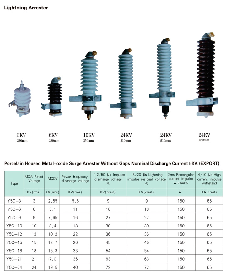 Porcelana ubicado óxido metálico contra sobretensiones pararrayos fuga distancia 280mm condiciones normales de funcionamiento para pararrayos de la oleada: